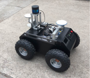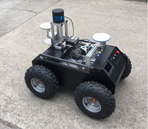 移动平台选用我司自主研发的全地形移动平台,该平台采用强有力的四轮差速驱动系统,适合全地形的轮胎以及较高的底盘高度能够适应各种路面,并采用全新的防水式设计,能够适应户外的工作环境,车体内置高速处理器、编码器、IMU能够实现车体的底层控制,并附带有遥控装置,方便使用。